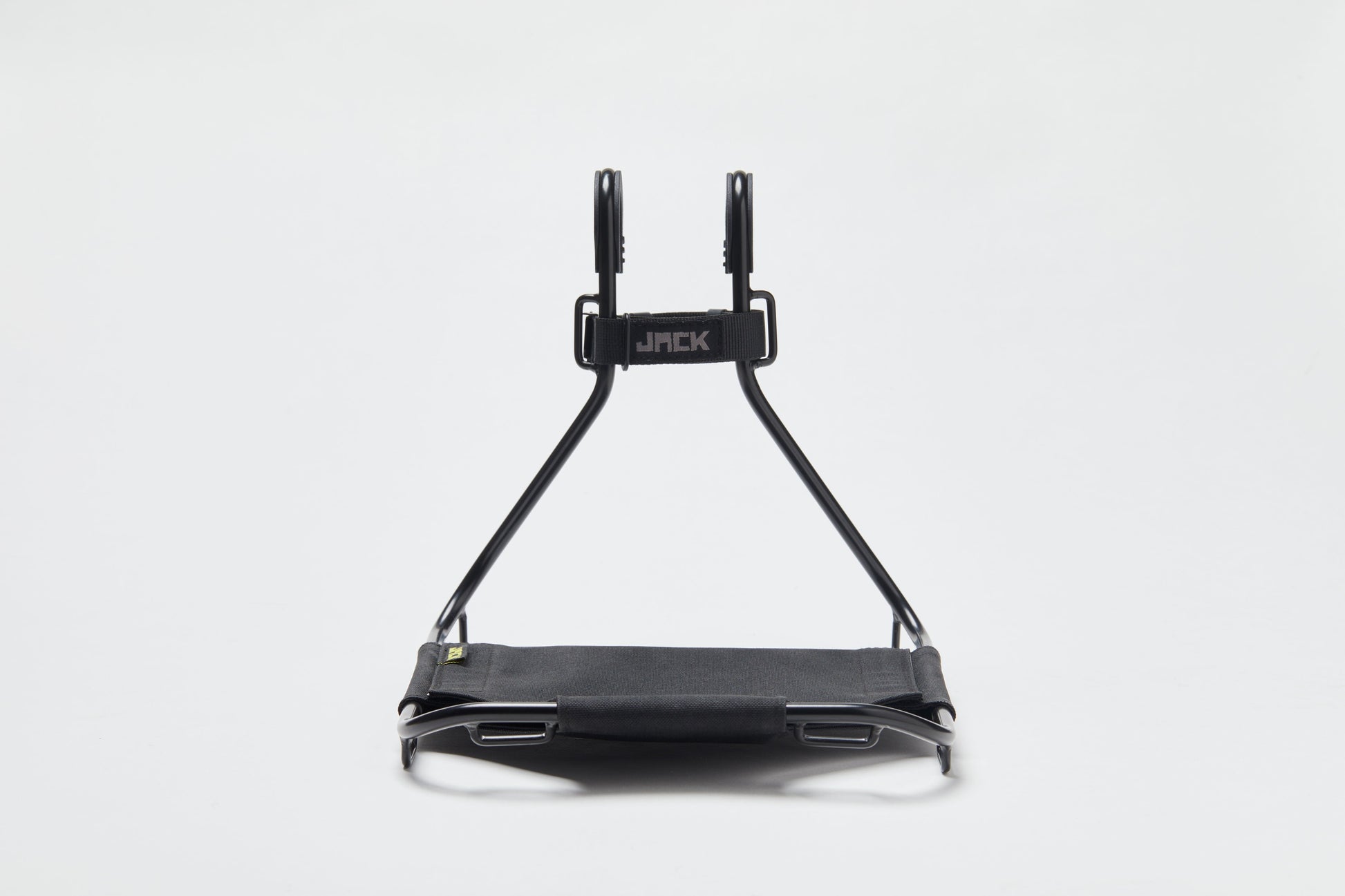 JACK is made from solid 304 Stainless steel and comes with two adjustable length bungees (1.2m) with snake heads to secure your baggage, a bunch of spacers and inserts and 5 different length Loadstraps to fit JACK to your bike.